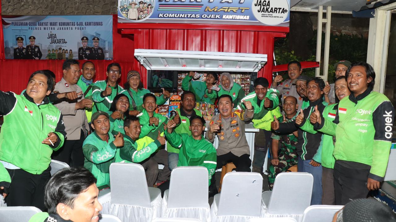 Jakarta – JurnalRepublik, Kapolres Metro Jakarta Pusat, Kombes Pol. Susatyo Purnomo Condro, meresmikan Gerai Rakyat Mart bagi komunitas ojek online (ojol) di kawasan Polsubsektor Blora, Menteng, Jakarta Pusat, Jumat (10/10/2025) siang. Kegiatan ini merupakan bagian dari program Jaga Jakarta, yang menjadi salah satu prioritas Polda Metro Jaya dalam memperkuat kemitraan antara polisi dan masyarakat.